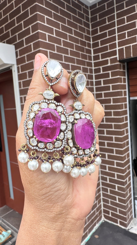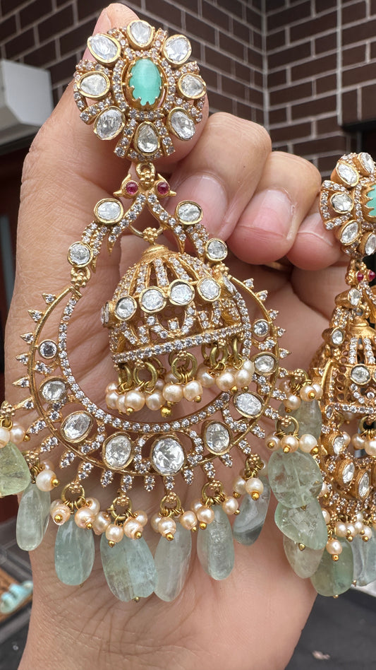 Moissanite Kundan earrings Real Gold Inspired affordable design