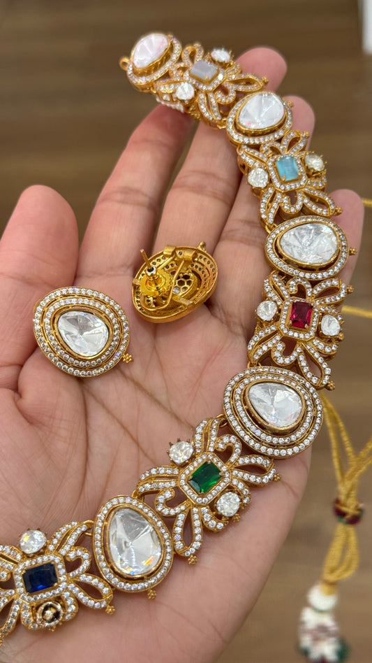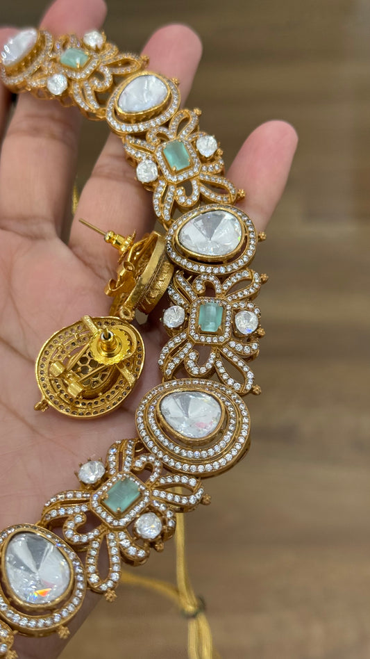 Moissanite Kundan Necklace Real Gold Inspired affordable design