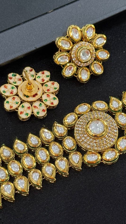 Premium Gold Plated Kundan Choker Set with Matching Studs