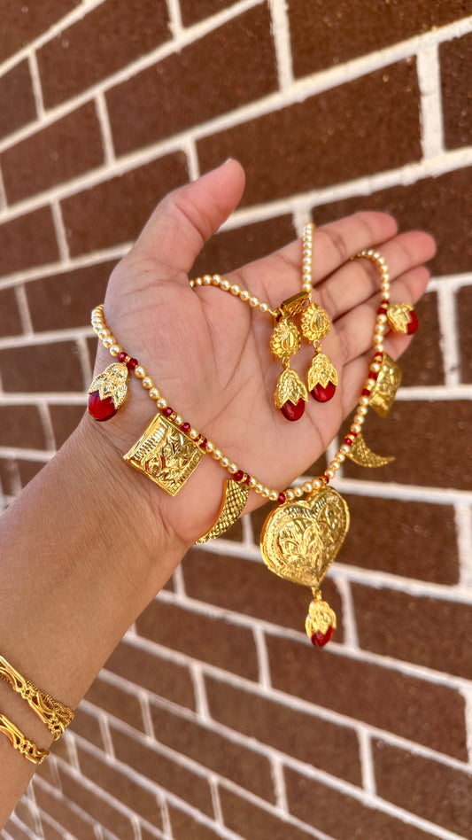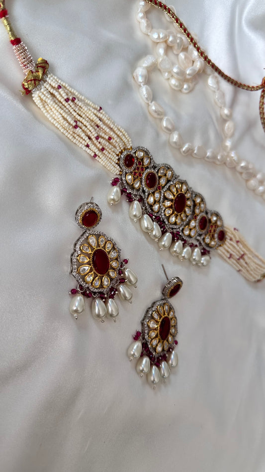 Ruby Punjabi traditional necklace with earrings Sandookh collection