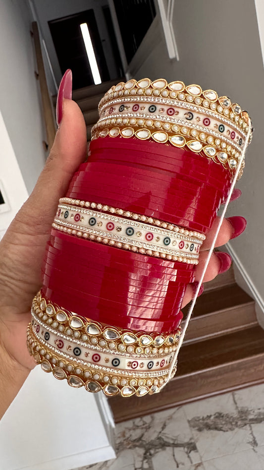 Premium Bridal Choora with Pachi kundan kangan ivory (off white) (Copy)