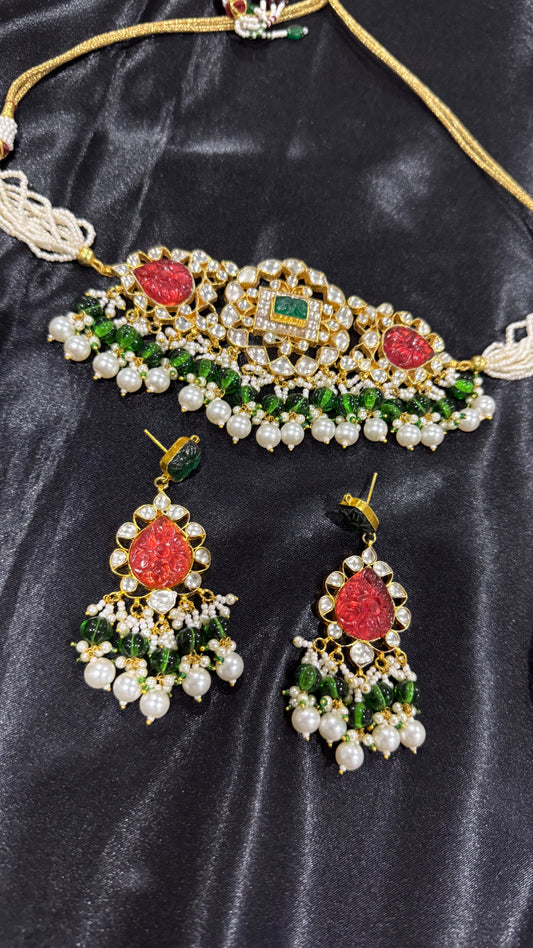 Pachi Kundan Choker Set – Bridal Indian Jewelry with Earrings