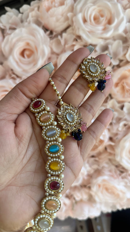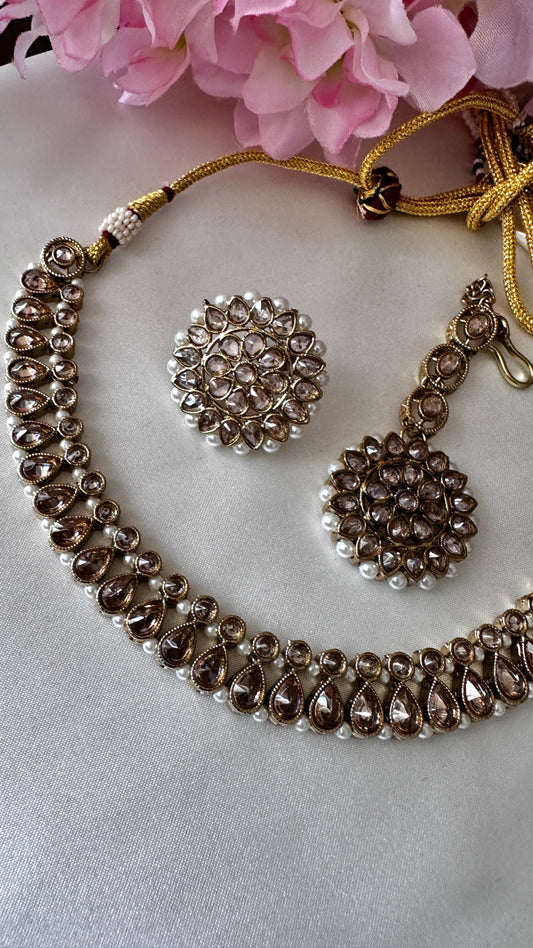Gold plated necklace pendant set Sandookh collection/ Gold-look kitty set/ Traditional Indian jewelry/ design no 5
