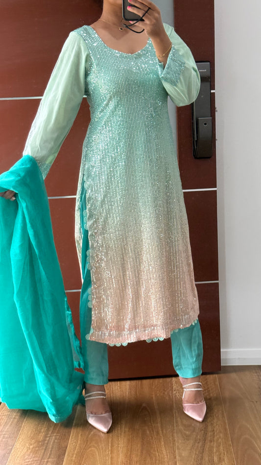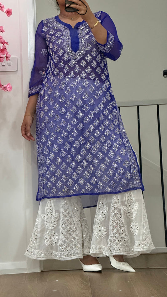 chikankari blue kurti set / Indian kurta set/ Indian Outfit/ Chikankari black kurti set, traditional Indian outfit with intricate embroidery, perfect for casual and festive occasions. Indian kurta set suitable for elegant styling
