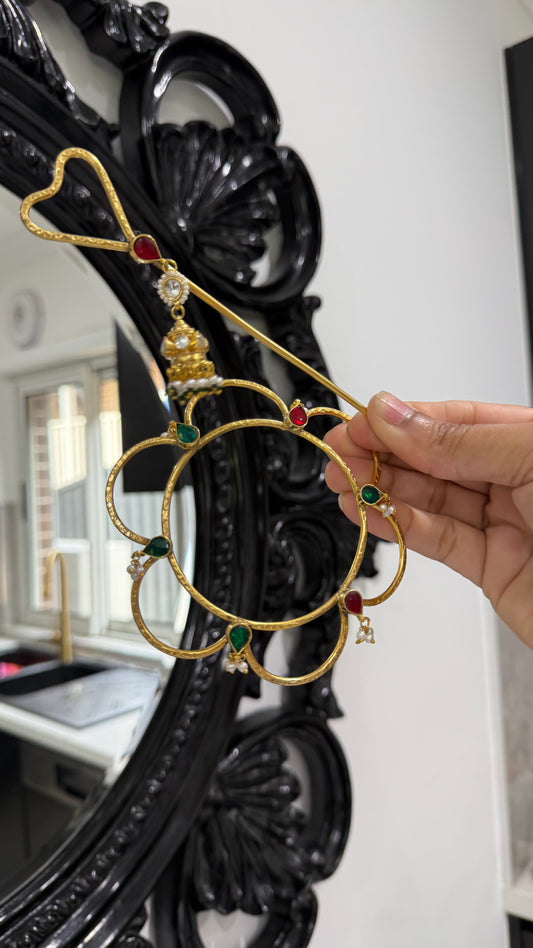 Pachi Kundan Hair Bun Accessory with Stick | Gold Plated | Brass Base