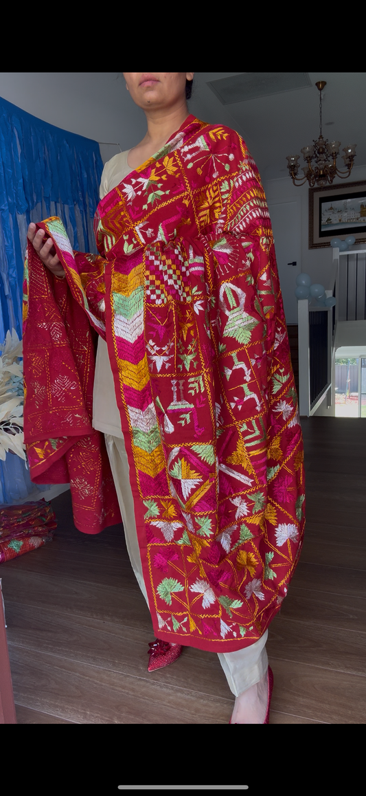 Pure Chinon Phulkari Dupatta – Hand Embroidered Punjabi Heritage – Australia