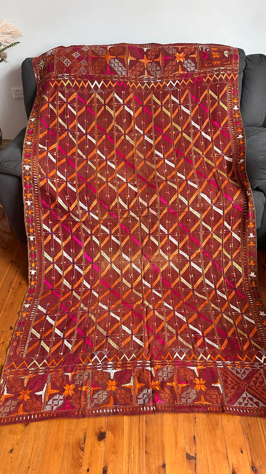Vintage(preloved) Hand work khaddar baagh phulkari shawl dupatta