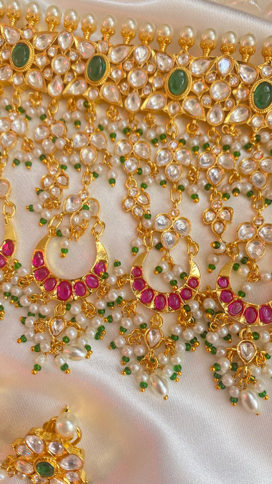Bridal choker with tikka and earrings excellent quality of uncut kundan