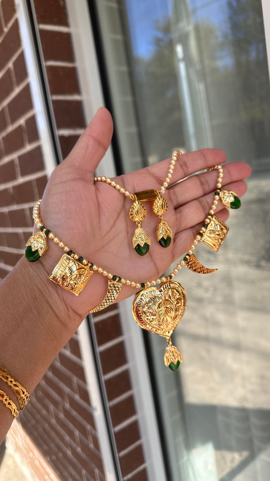 Green Punjabi traditional necklace with earrings Sandookh collection