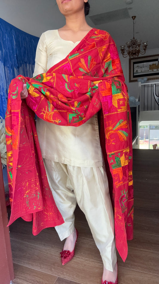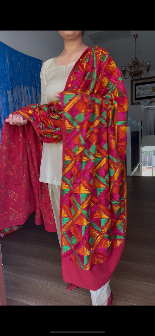 Khaddar Baag Phulkari Hand Work Shawl – Punjabi Virsa Heritage – Australia