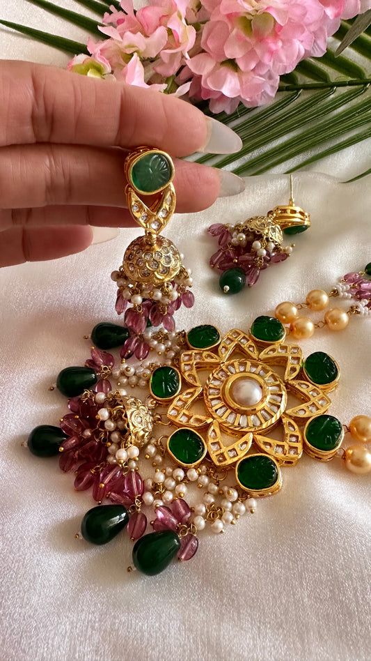 Kyamat uncut kundan oversized earrings with sahare statement earring