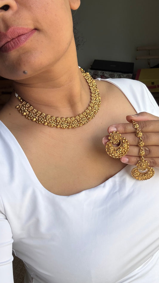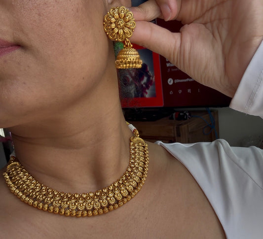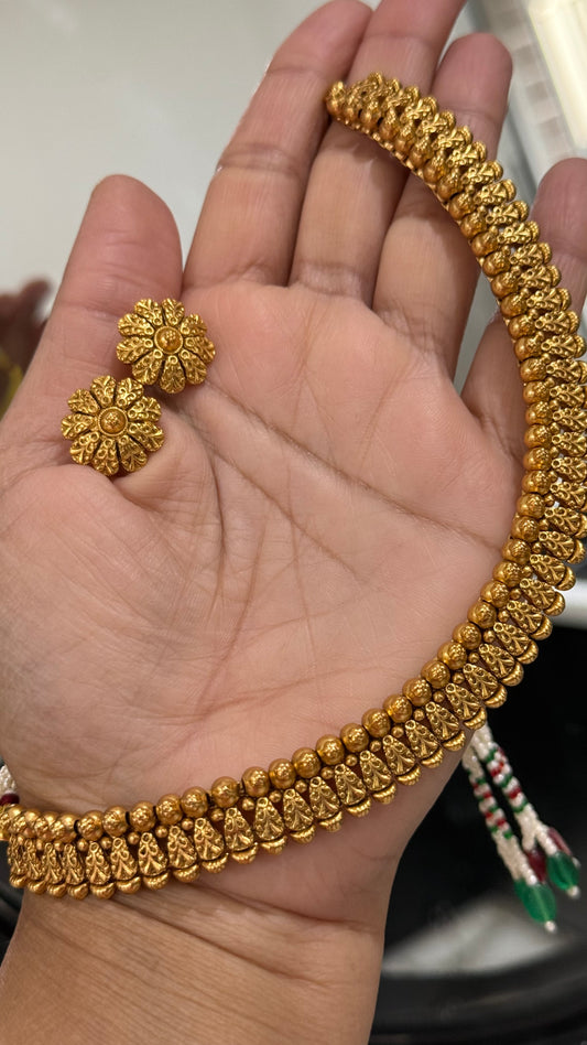 Antique Gold Plated Necklace Set with Stud Earrings – Traditional Indian Jewelry Sandookh collection