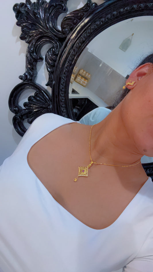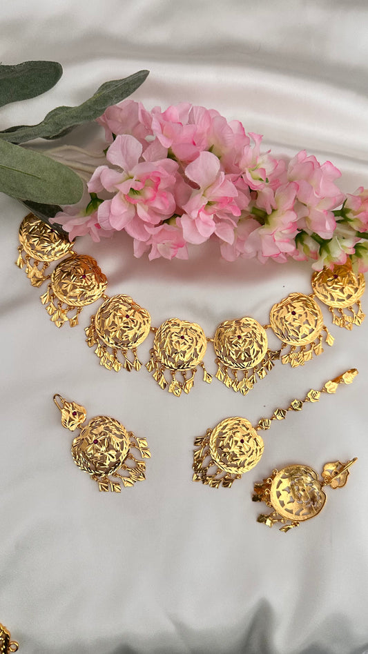 Gold plated necklace pendant set Sandookh collection/ Gold-look kitty set/ Traditional Indian jewelry/ design no 2