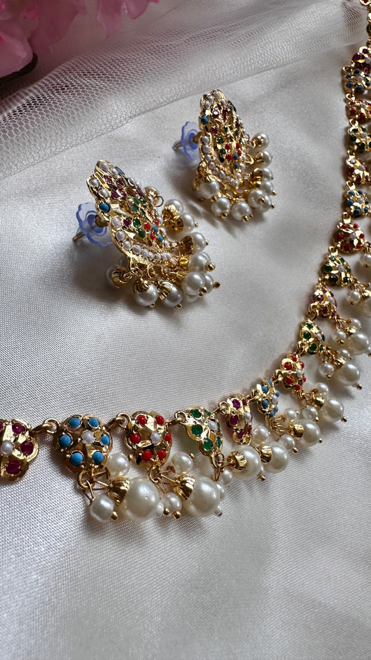 Antique look Necklace Set with Stud Earrings – Traditional Indian Jewelry Sandookh collection