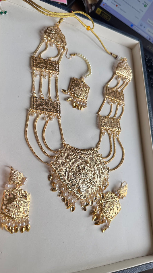 Gold plated necklace pendant set Sandookh collection/ Gold-look kitty set/ Traditional Indian jewelry/ design no 5