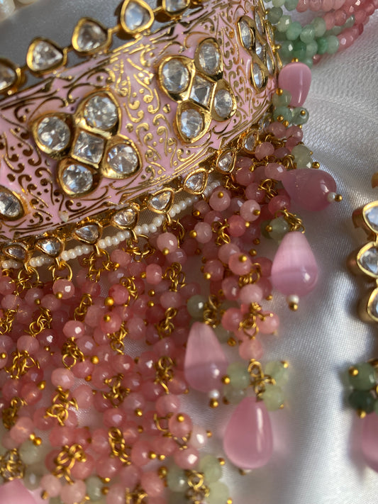 uncut kundan choker pink mint