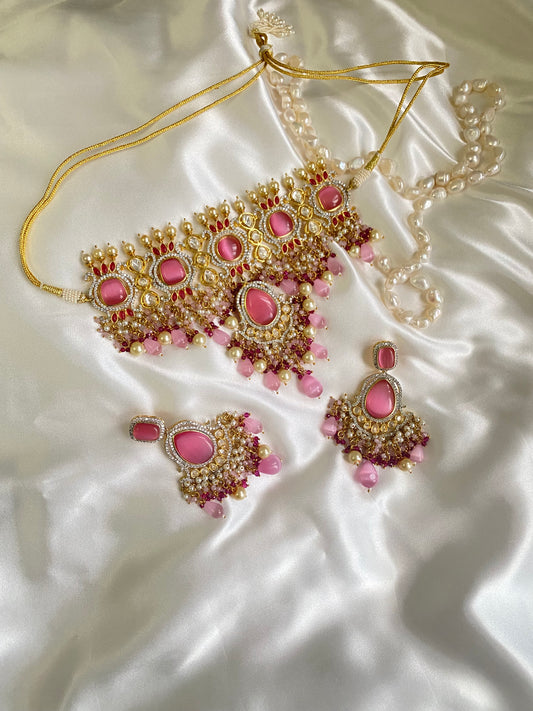 SAACHI uncut kundan dual tone Choker Pink