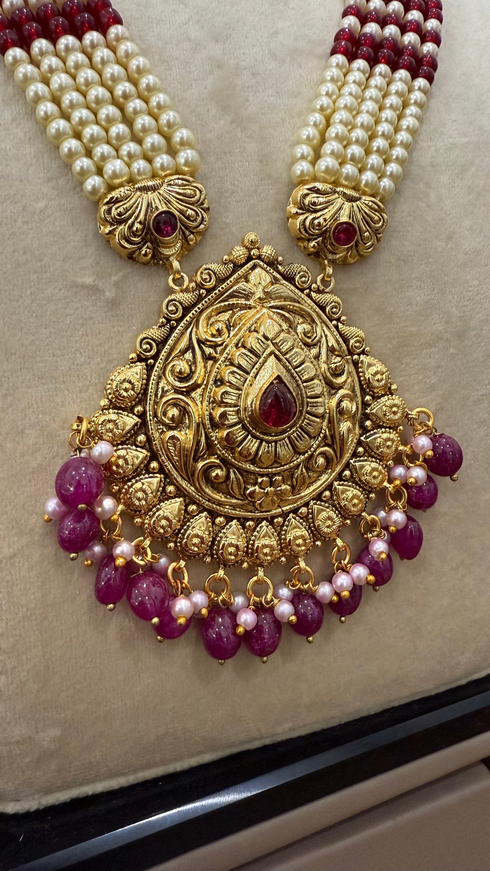 Gold Plated Indian Raani haar Set with Earrings & Tikka – Bridal Jewelry Sandookh collection