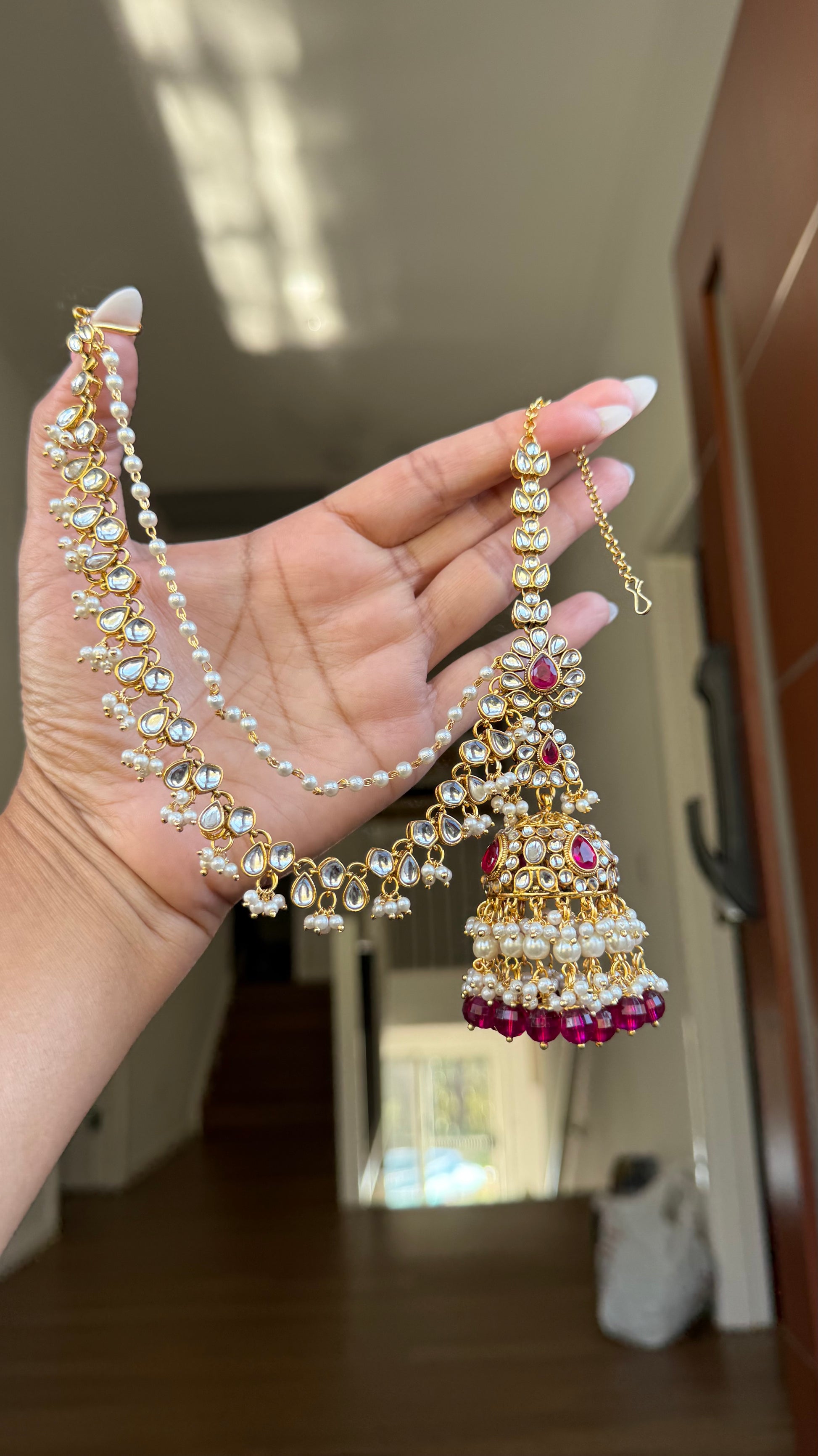 Traditional Kundan Jhumki earrings with sahare