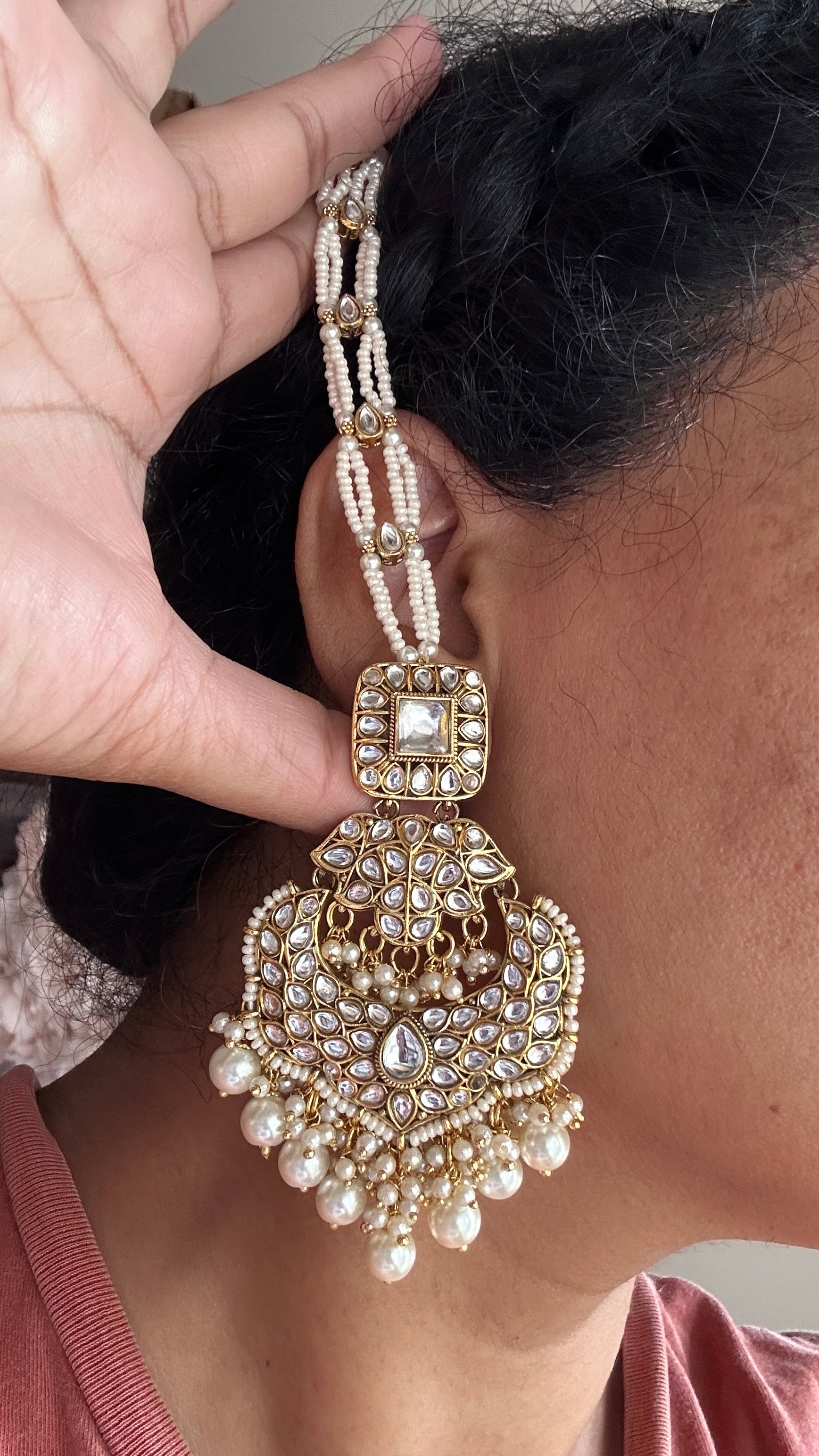 Kundan earrings and tikka with sahare golden