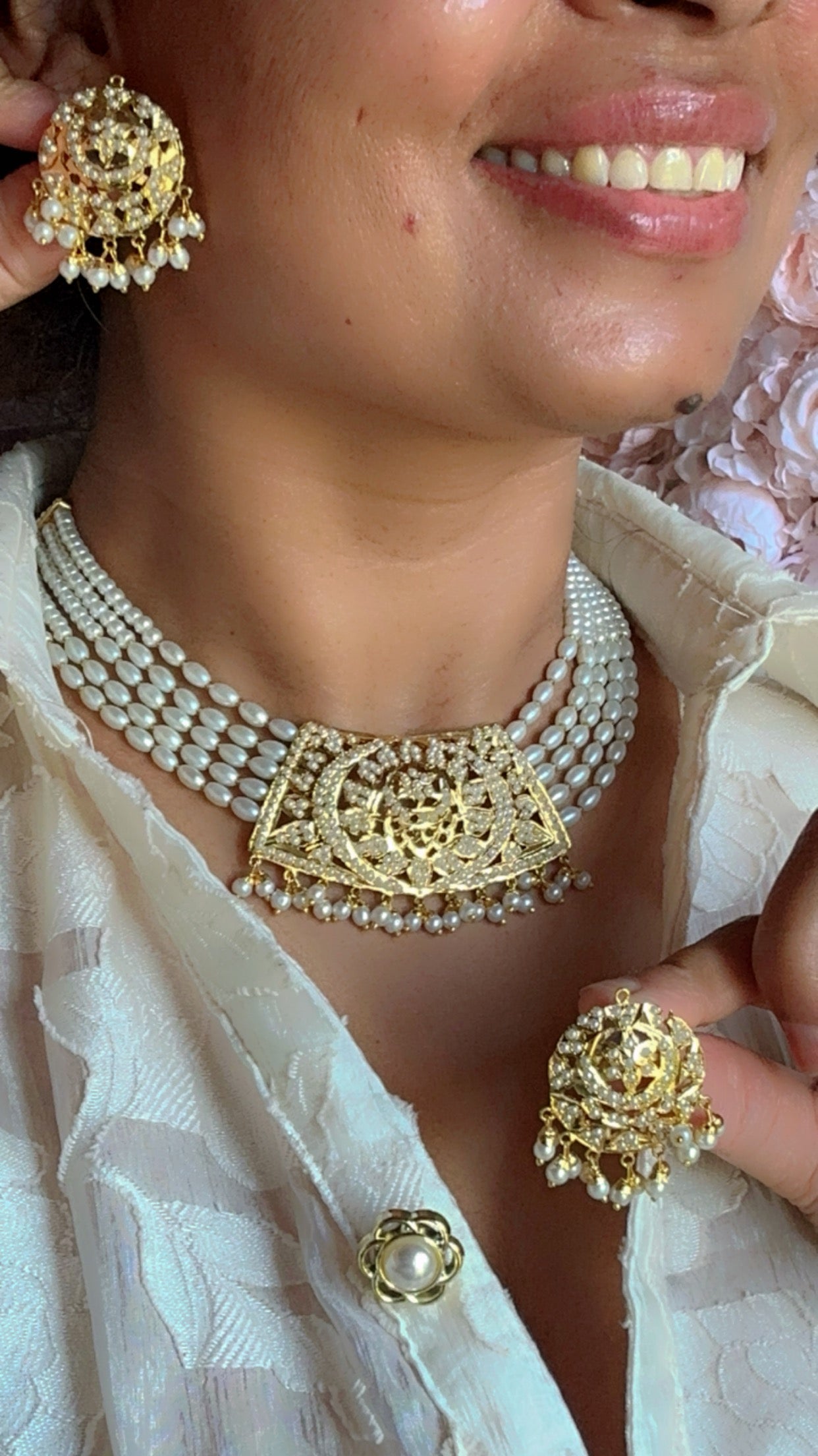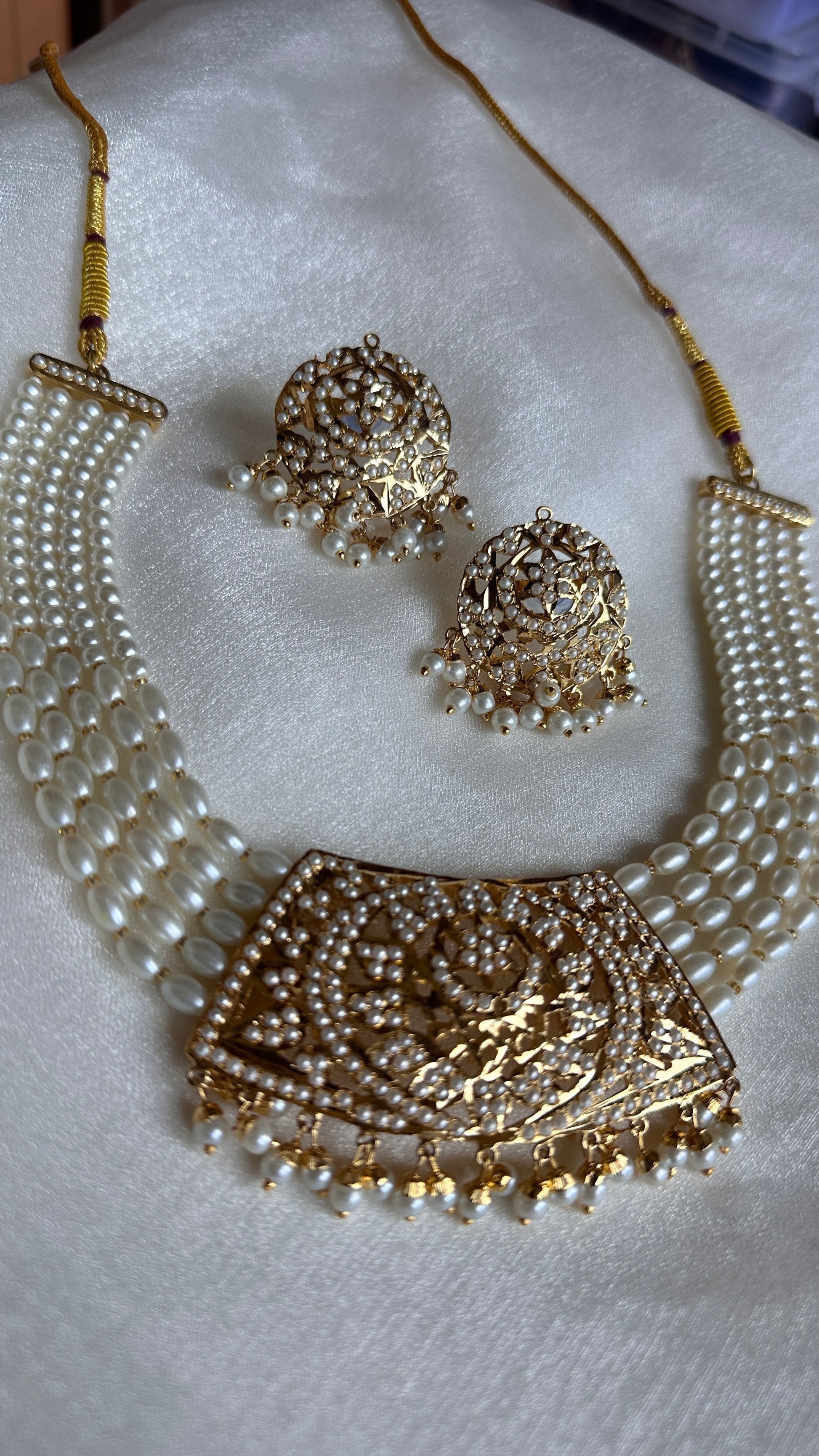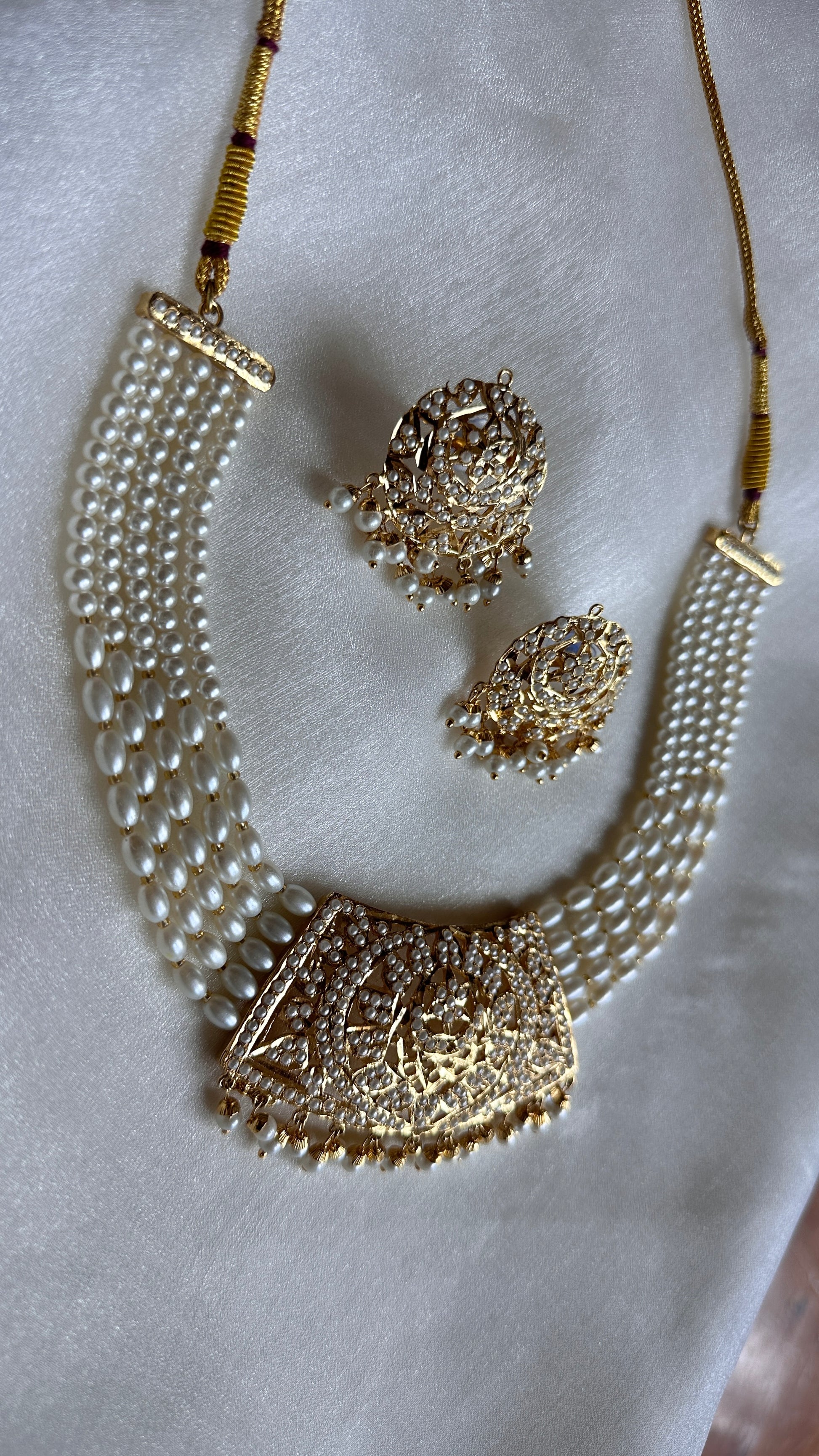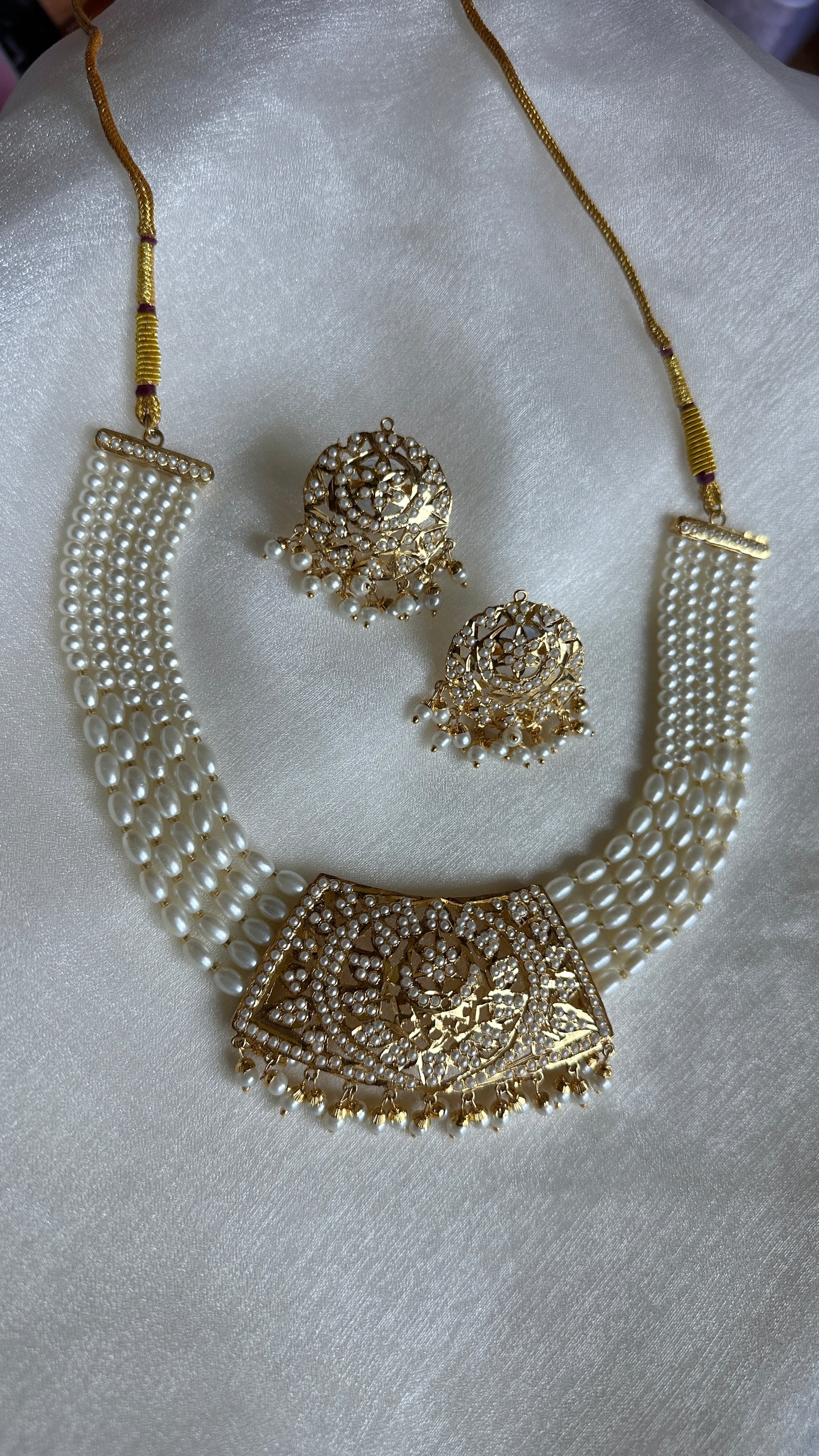 Real jadau gold plated necklace with earrings