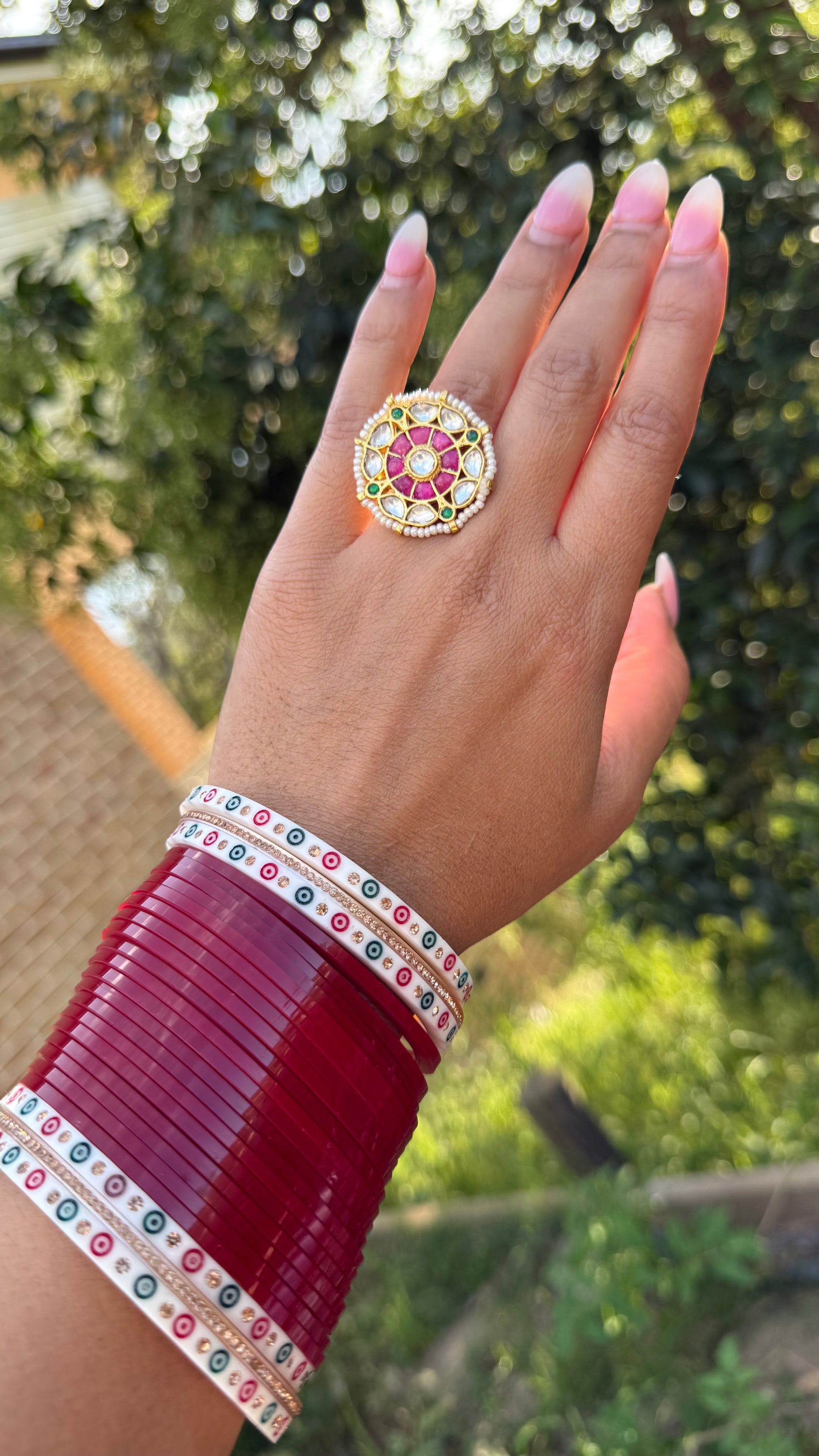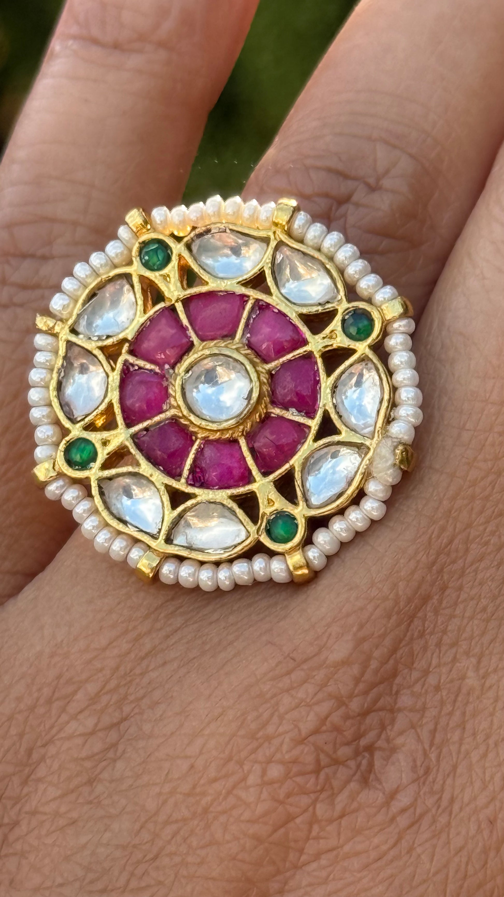 Shop for a beautiful adjustable uncut Kundan ring. Perfect for traditional and modern styles.
