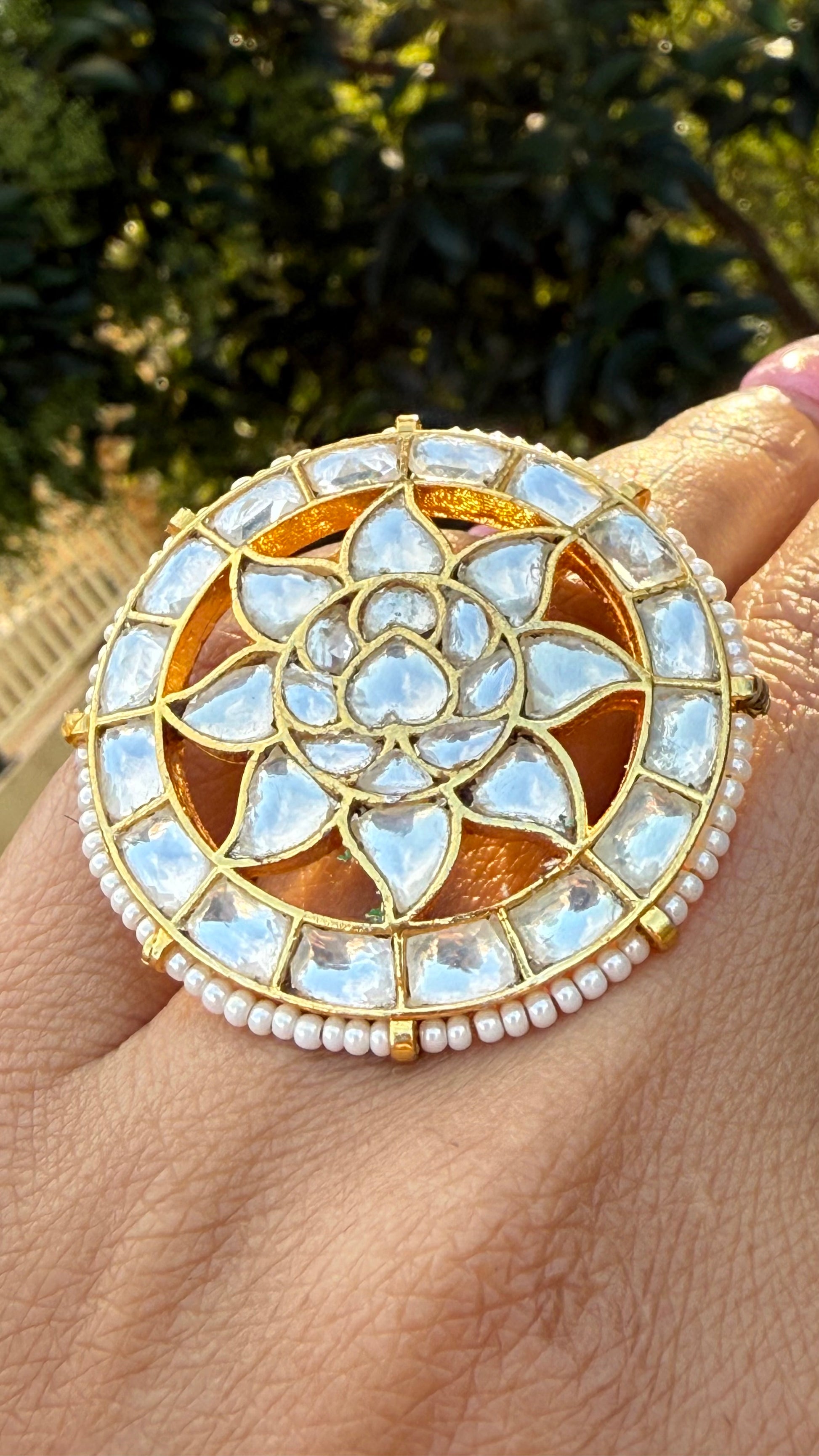Shop for a beautiful adjustable uncut Kundan ring. Perfect for traditional and modern styles.
