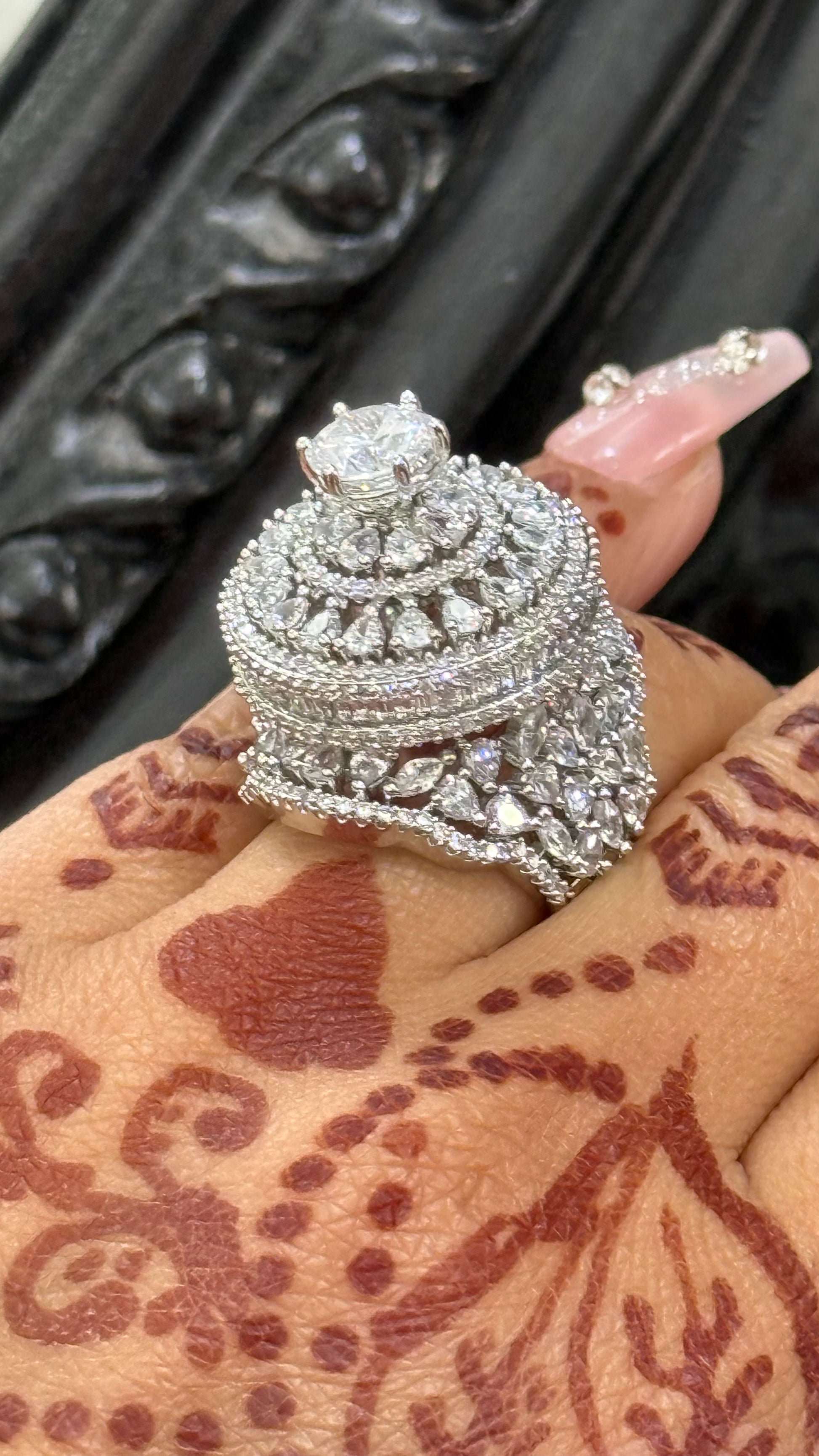 Elevate your style with our American Diamond Adjustable Ring, designed to give the same sparkle and shine as real gold and diamond jewellery. Crafted with high-quality American Diamonds and finished in a premium gold polish, this ring is lightweight, durable, and adjustable to fit any finger size. Perfect for weddings, parties, or everyday wear, it offers affordable luxury without compromising on elegance.