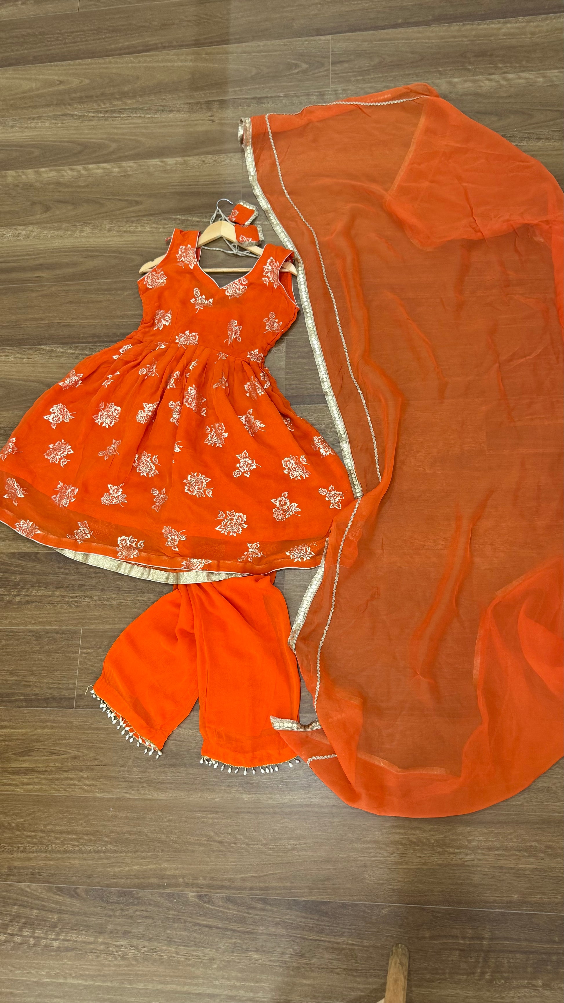 Anarklai Frock with dupatta and palazo Indian outfit orange
