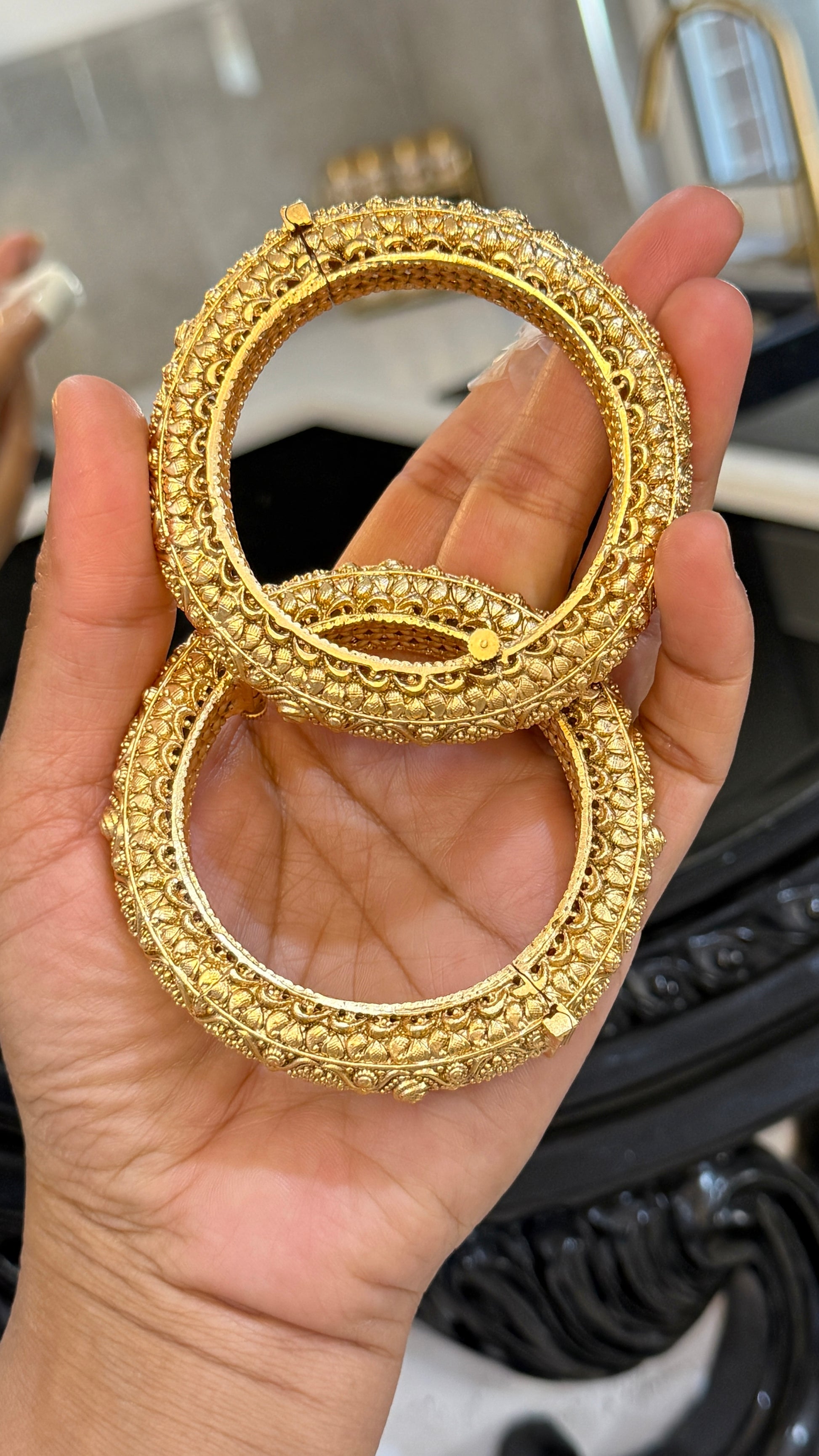 Store your Kangans in a soft pouch or jewelry box to prevent scratches.
