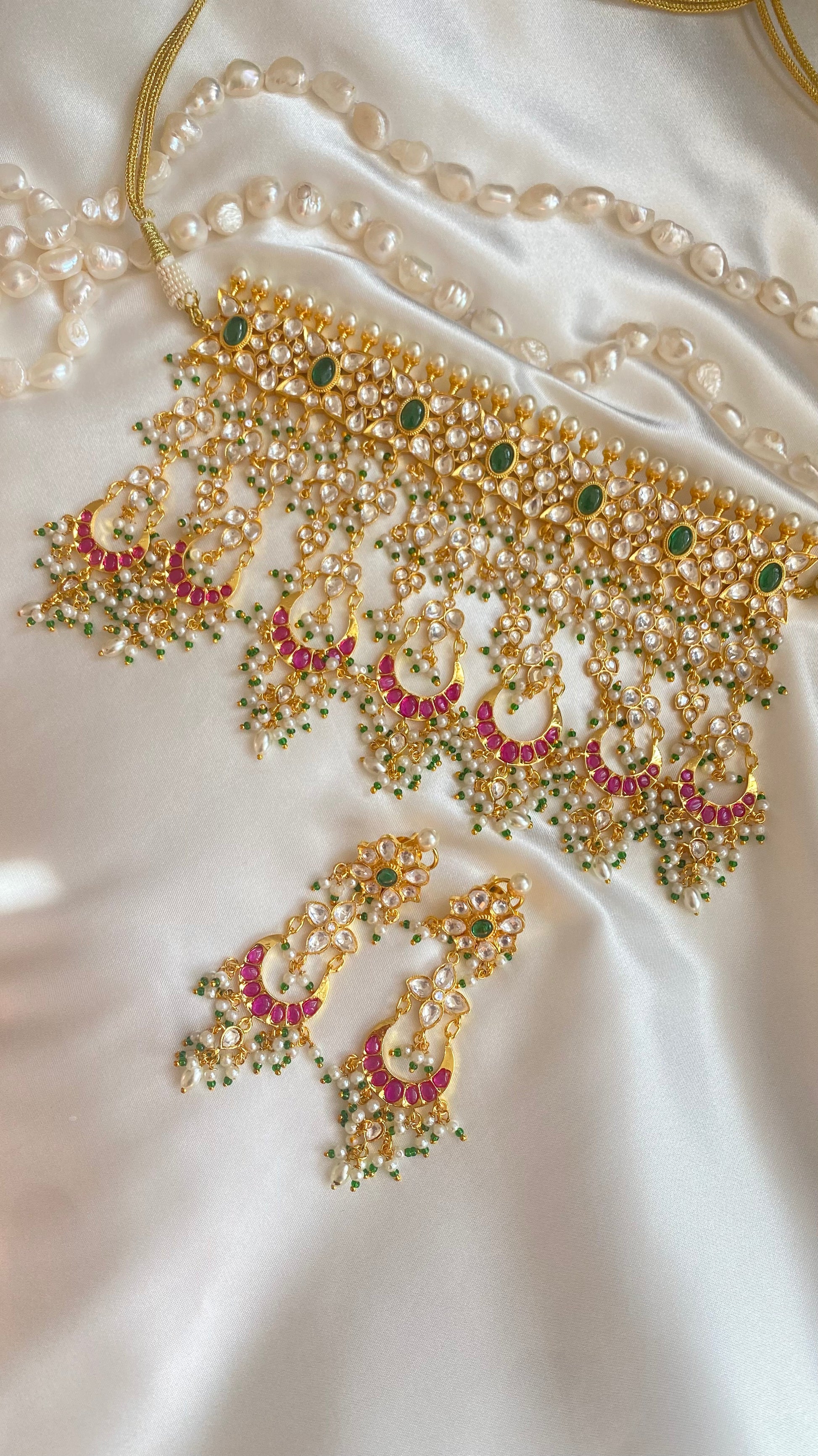 Bridal choker with tikka and earrings excellent quality of uncut kundan
