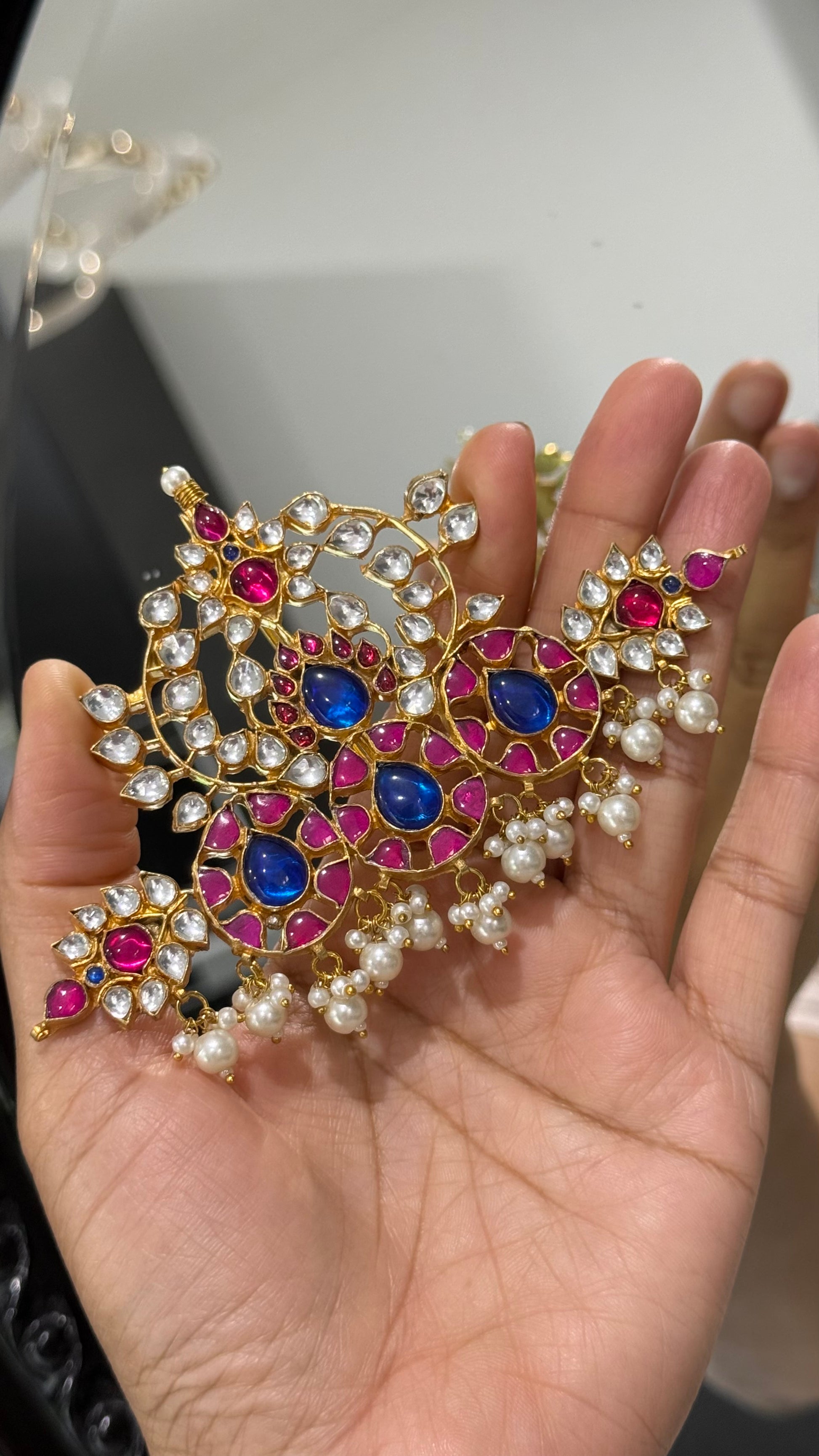 - Sparkling stones Uncut Kundan / pearls (custom options available)
