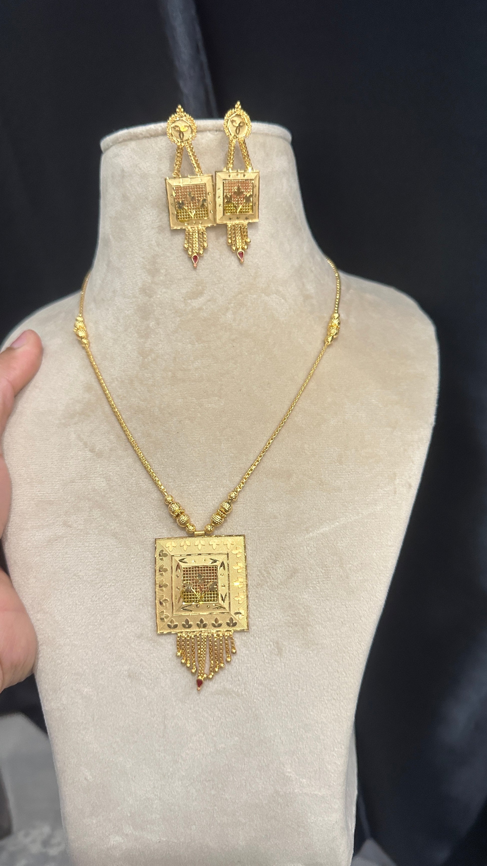 micro gold plating brass base, necklace with earrings necklace length roughly 29 cms