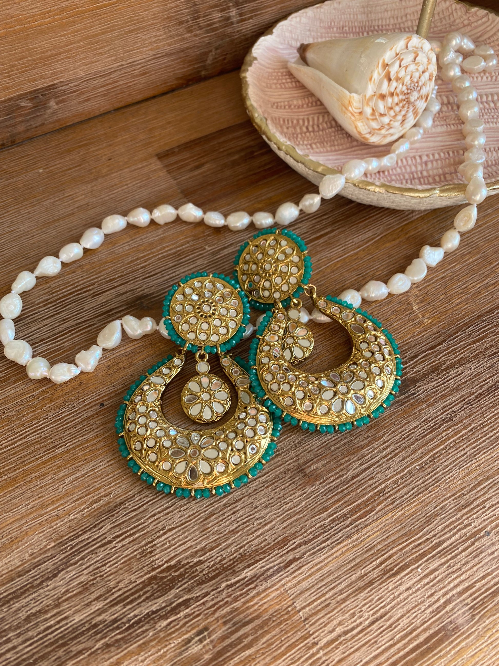 mirror earrings sea green
