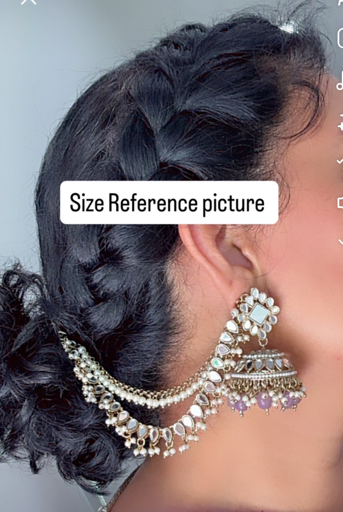 Bring timeless elegance to your look with our Mirror Jhumka with Attached Sahare, handcrafted to add sparkle, grace, and comfort.