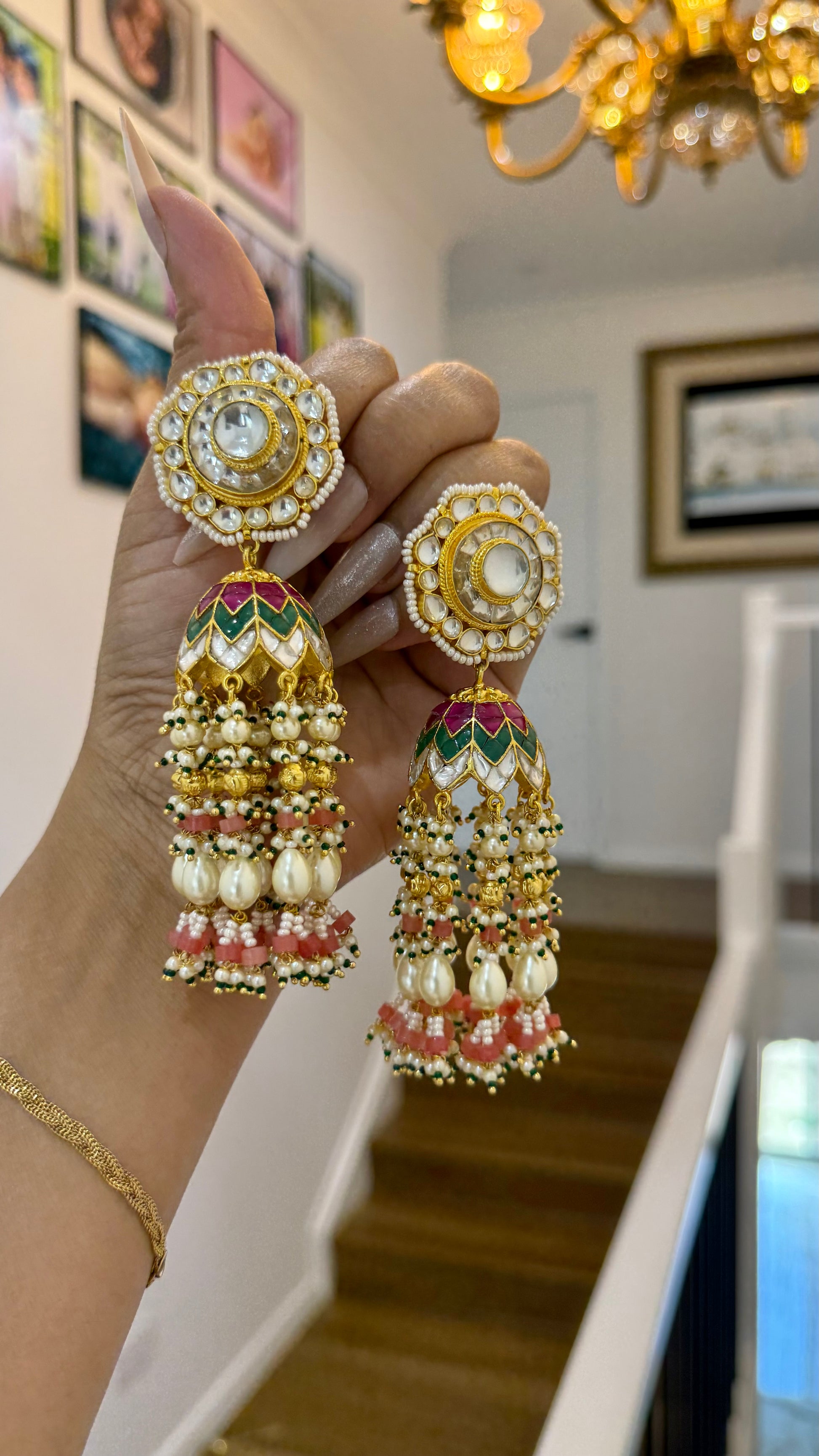 pachi kundan jhumka