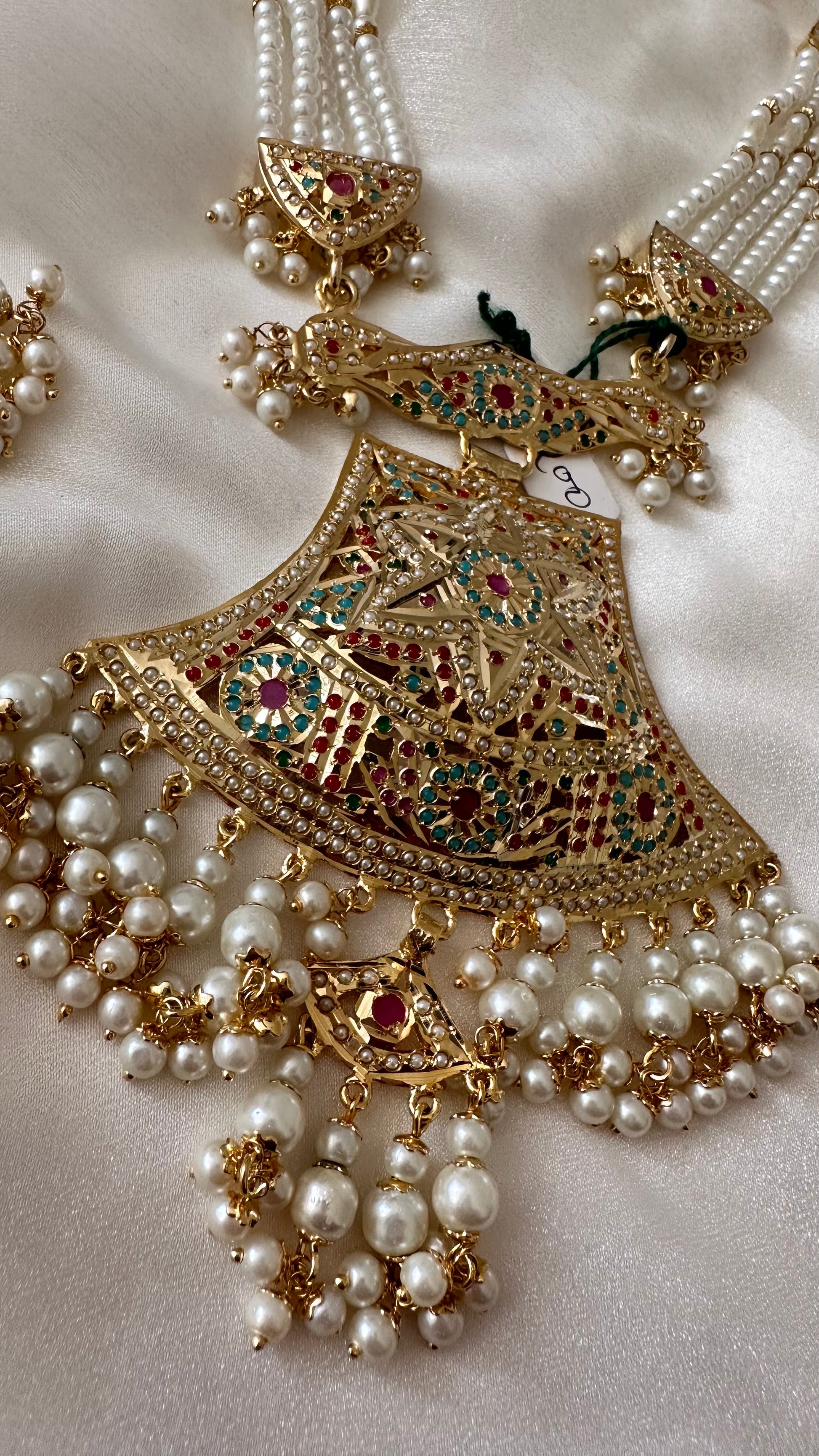 Gold plated raani haar real jadau raani haar with tikka and earrings